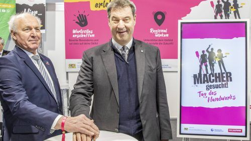 München – Seit diesem Schuljahr ist jede weiterführende Schule in Bayern verpflichtet, einmal im Schuljahr einen „Tag des Handwerks“ anzubieten. Auf der Internationalen Handwerksmesse in München warben gestern Bayerns Ministerpräsident Markus Söder (CSU) und der Präsident des Bayerischen Handwerkska