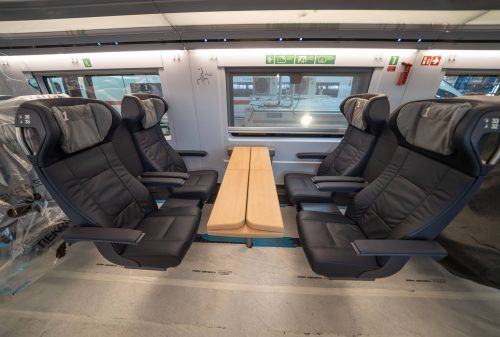 Mehr Verstellmöglichkeiten, mehr Ablageflächen, mehr Privatsphäre, bessere Fahrradmitnahme: Die Bahn hat am Montag den ersten ICE 3 Neo von Siemens mit neuer Innenausstattung in Betrieb genommen. Die Premierenfahrt ging von Frankfurt nach Köln. Mit neu entwickelten Sitzen und einem „modernen Materia