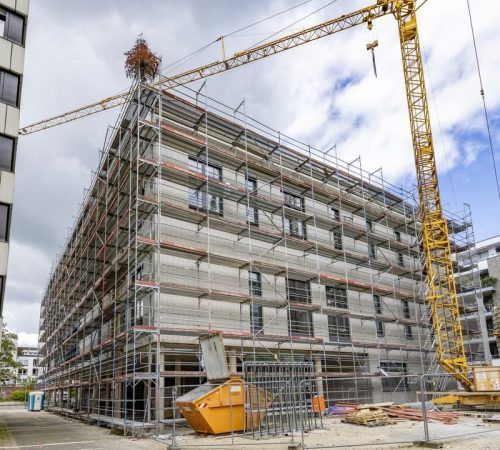 Platz für den Prozess: Neben dem Siegburger Amtsgericht entsteht derzeit das neue Prozessgebäude für die Cum-Ex-Verhandlungen am Bonner Landgericht. © Thomas Banneyer, dpa