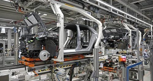 Produktion stilllegen und Fabriken schließen? Damit drohen die Autobauer indirekt, sofern die Flottenziele nicht aufgeweicht werden. Hier: E-Autoproduktion bei Volkswagen. © Teresa Kröger/Imago
