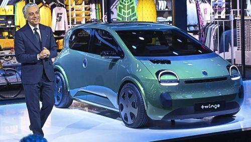 Renault-Chef Luca de Meo stellt auf dem Pariser Autosalon die elektrische Neuauflage des Kleinwagens Twingo vor. In Frankreich gibt es üppige Förderungen für E-Autos. © Franck Dubray/Imago