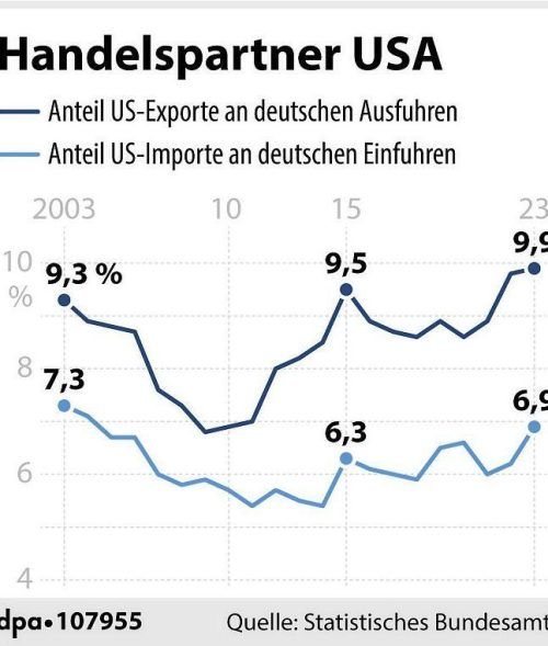 Die Bedeutung der USA als Handelspartner für Deutschland hat in den vergangenen Jahren deutlich zugenommen. Wie das Statistische Bundesamt in Wiesbaden am Mittwoch mitteilte, gingen im vergangenen Jahr 9,9 Prozent der deutschen Exporte in die Vereinigten Staaten – das war der höchste Anteil in den v