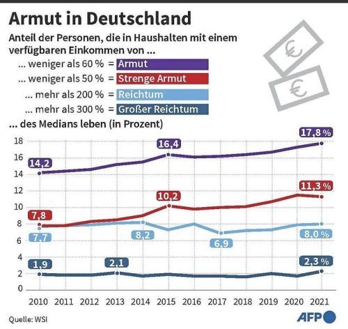 Berlin – Im Gegensatz zu den unerfreulichen Nachrichten, die momentan die Wirtschaftsentwicklung dominieren, steht ein positiver Befund. Die Armut in Deutschland scheint seit 2021 abgenommen zu haben. Darauf deuten drei