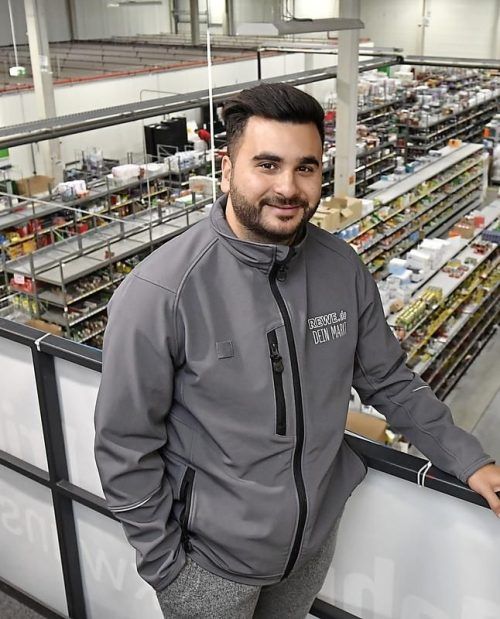 Zahllose Gänge mit Lebensmitteln prägen das Bild im Lager des Lieferdienstes. Lagerleiter Kyriakos Akritidis hat den Überblic