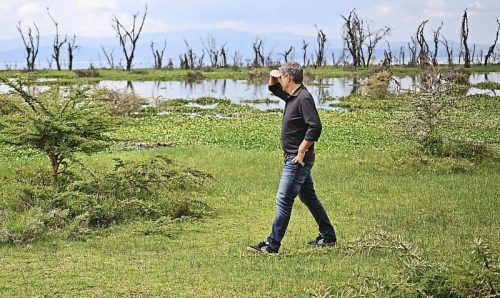 Robert Habeck (Bündnis 90/Die Grünen), Bundesminister für Wirtschaft und Klimaschutz, bei seinem Besuch beim Wirtschaftsgipfel in Afrika. Hier: Am Naivashasee in Kenia. © Sebastian Gollnow/dpa