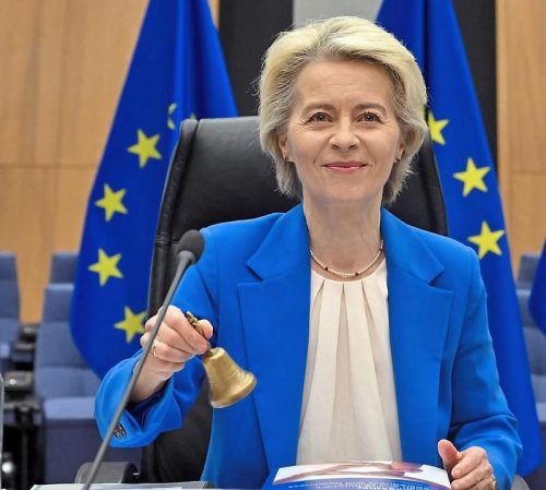 EU-Kommissions-Chefin und EVP-Mitglied Ursula von der Leyen hat dem Drängen ihrer Fraktion nachgegeben und will den Verkauf von Verbrenner-Motoren auch nach 20235 erlauben. © AFP