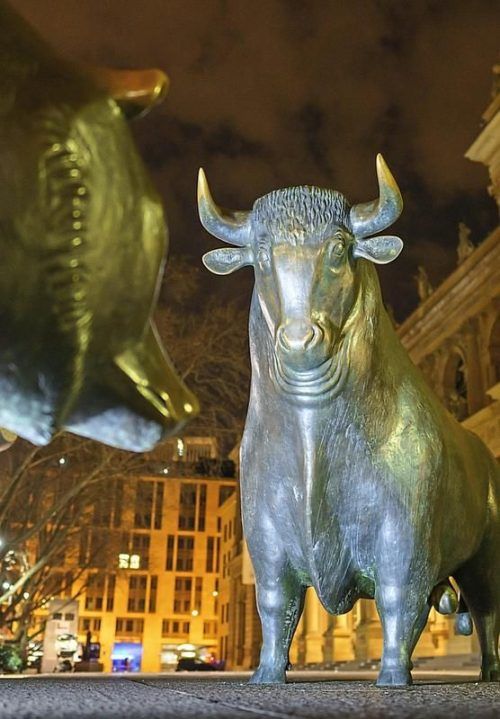 Trotz schwieriger Weltkonjunktur sollen Aktien nach Ansicht der Analysten gute Erträge liefern. Damit wäre auch 2025 ein Jahr der Bullen, nicht der Bären. © Frank Rumpenhorst/dpa