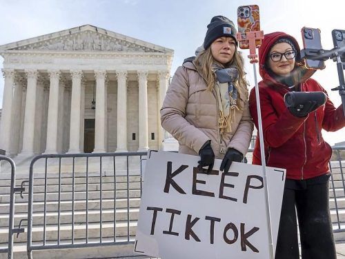 TikTok-Verbot in den USA: Donald Trump stellt Aussetzung des Gesetzes in Aussicht. Stand heute müssen die Amerikaner auf die vor allem bei jungen Menschen beliebte Plattform verzichten. © Jacquelyn Martin/AP/dpa