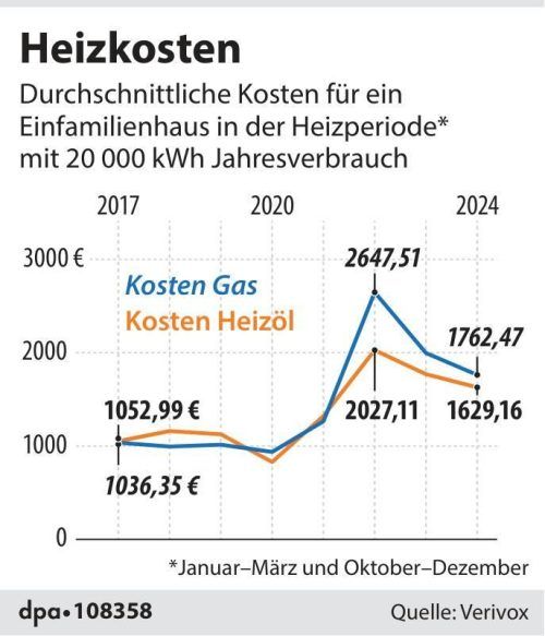 München – Die Heizkosten von Haushalten mit Gas- oder Ölheizungen sind im vergangenen Jahr im Schnitt deutlich gesunken. Dies geht aus Berechnungen des Vergleichsportals Verivox hervor. Gründe dafür seien ein geringerer Heizbedarf aufgrund einer wärmeren Witterung sowie gesunkene Brennstoffpreise.