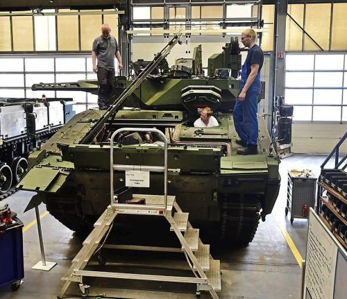 Eine ganze Industrie hofft auf Aufträge in Milliardenhöhe. Das Bild zeigt die Produktion des Schützenpanzers Lynx von Rheinmetall im niedersächsischen Unterlüß. © Sepp Spiegl, Imago