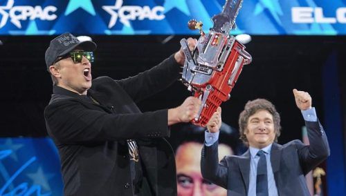 Mit der Kettensäge will Musk (links) den Staat zurückdrängen – ähnlich wie Javier Milei in Argentinien. Kritiker sagen, dabei verfolge er Eigeninteressen. © Jose Luis Magana