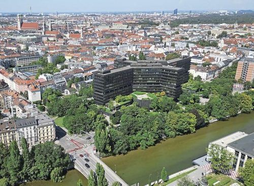Europäisches Patentamt (EPA) an der Isar in München: Für Unternehmen hat die Anmeldung von Patenten eine große Bedeutung, um Innovationen vor Wettbewerbern zu schützen. © marcus schlaf