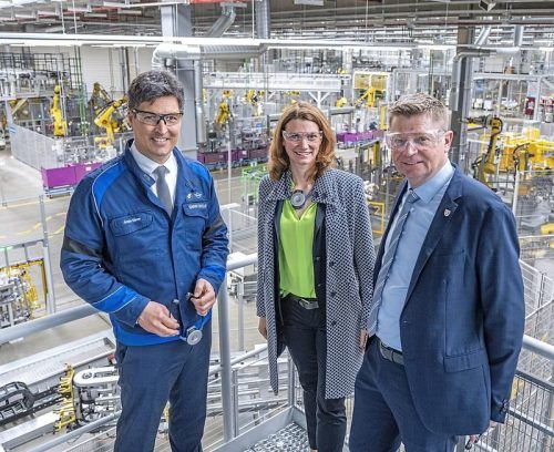 Stolz auf die neue Fabrik: Werkleiter Armin Ebner, Landrätin Tanja Schweiger und Bürgermeister Harald Stadler (v. l.).