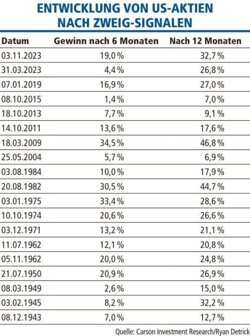 An der Wall Street liebt man Statistiken. Eine davon – der Zweig-Indikator – lieferte in der Vergangenheit ein verlässliches Signal, dass die Kurse kräftig steigen. © TIMOTHY A. CLARY
