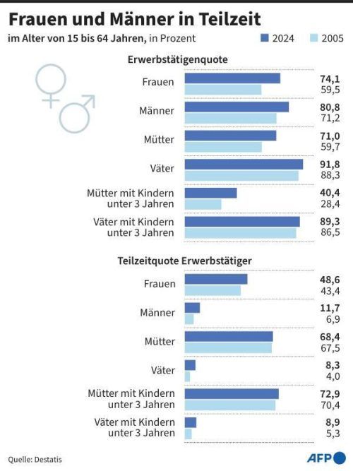 Wiesbaden – So viele Menschen wie nie zuvor in Deutschland haben 2024 in Teilzeit gearbeitet. Mit 29 Prozent lag der Anteil im vergangenen Jahr auf einem Höchststand, wie das Statistische Bundesamt mitteilte. Demnach arbeitet mit 49 Prozent fast jede zweite Frau in Teilzeit, aber nur zwölf Prozent d