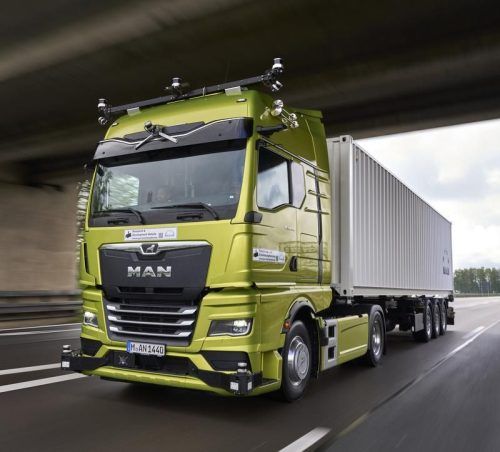 Der selbstfahrende MAN-Truck sammelte tausende Kilometer auf Bayerns Straßen, bei der Jungfernfahrt im April 2024 war Verkehrsminister Volker Wissing an Bord. © MAN