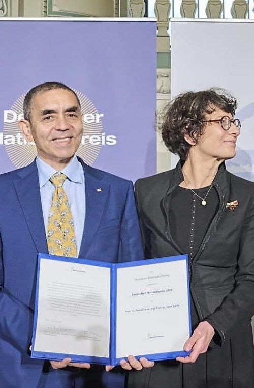 Unternehmerischer Mut: Die Biontech-Gründer Özlem Türeci und Ugur Sahin (li.) wurden von Kanzler Merz ausgezeichnet.
