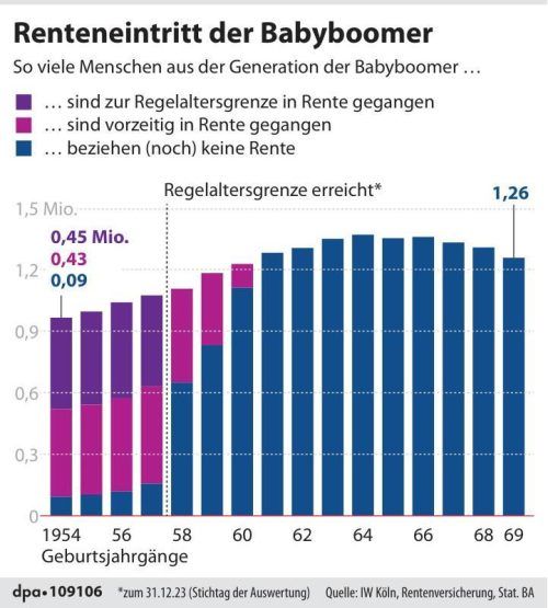 Berlin – Fast jeder zweite Babyboomer im Rentenalter ist bisher vorzeitig in Rent