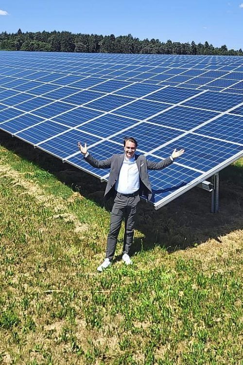 Sebastian Schweier, Leiter der Sparte für Infrastrukturinvestments der Versicherungskammer Bayern, im Solarpark Euerwang. © Andreas Hö