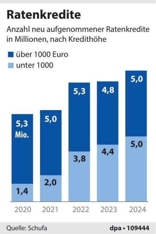 München/Berlin – Immer mehr Menschen in Deutschland nehmen einen Ratenkredit auf – zunehmend auch für kleinere Anschaffungen. Wie die Auskunftei Schufa mitteilte, stieg die Zahl der neu aufgenommenen Ratenkredite im vergangenen Jahr erstmals auf über zehn Millionen, wobei die Hälfte unter der Summe