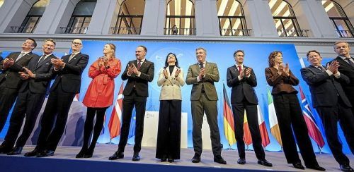 Neue Energie-Allianz: Katherina Reiche (CDU), Bundesministerin für Wirtschaft und Energie (Bildmitte), steht mit ihren Amtskollegen beim Gipfeltreffen der Nordsee-Anrainerstaaten zusammen. Bei dem Treffen der Regierungschefs und Energieminister wird es vor allem um den Ausbau von Offshore-Windparks