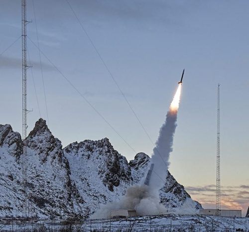 Das Start-up Hypersonica hat am 3. Februar die erste europäische Hyperschallrakete getestet. Der Prototyp hob ohne Sprengkopf vom norwegischen Weltraumbahnhof Andøya ab und erreichte eine Geschwindigkeit von 7400 Stundenkilometern. © Hypersonica/dpa