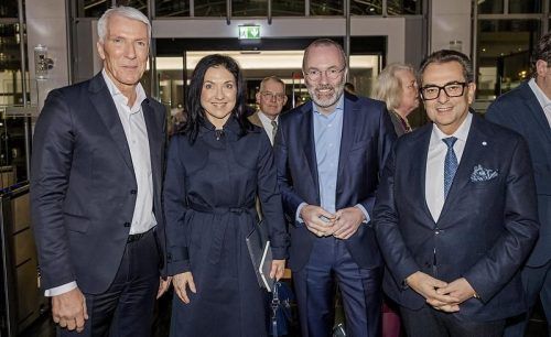 G+D-Chef Ralf Wintergerst (v. li), Bundeswirtschaftsministerin Katherina Reiche, EVP-Chef Manfred Weber und Stavros Kostantinidis, 2. Stellvertretender Vorsitzender der Europa-Konferenz. © Loredana La Rocca Photo