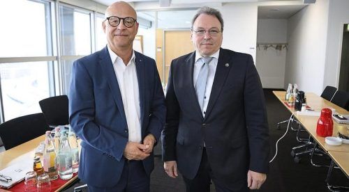 Tarifeinigung geschafft: Bahn-Personalchef Martin Seiler (li.) und GDL-Chef Mario Reiß verhandelten erfolgreich – und offenbar mit gegenseitigem Respekt. © Bernd von Jutrczenka, dpa