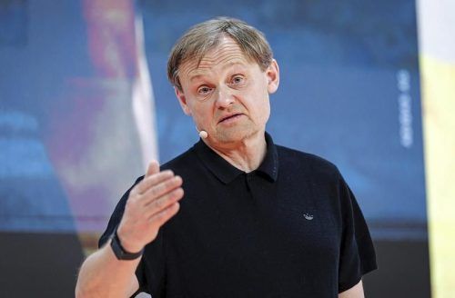 Bjørn Gulden, Vorstandsvorsitzender des Sportartikelherstellers Adidas AG, spricht während der Bilanz-Pressekonferenz des Unternehmens. © Daniel Karmann/dpa