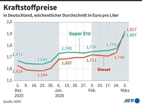 München – Die Spritpreise steigen immer weiter: Einen Tag nach Dieselkraftstoff hat auch die günstigste gängige Benzinsorte Super E10 die Marke von zwei Euro pro Liter im bundesweiten Durchschnitt überschritten. In der Preisspitze am Morgen kostete sie 2,003 Euro, wie der ADAC mitteilte. Auch Diesel