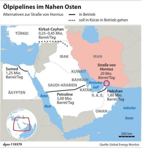 Teheran – Die Lieferungen durch die Straße von Hormus, die den Persischen Golf mit den Weltmeeren verbindet, sind fast komplett zum Erliegen gekommen. 129 Schiffe passieren den Seeweg normalerweise im täglichen Durchschnitt, zuletzt waren es am Tag nur noch eine Handvoll. Mindestens 16 Schiffe wurde