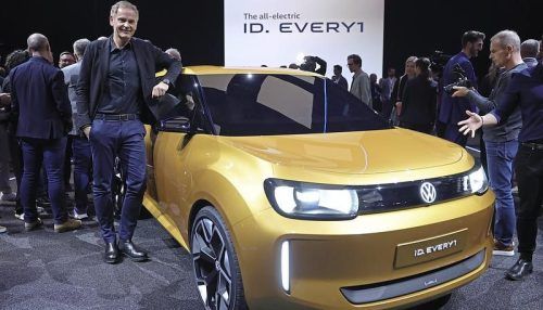 VW-Chef Oliver Blume zeigte 2025 erstmals das Elektroauto ID.Every1 für rund 20.000 Euro. © Rolf Vennenbernd, dpa