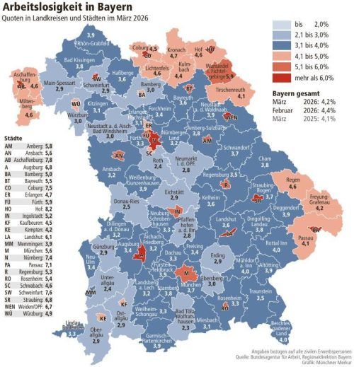 München/Nürnberg – Weniger Arbeitslose als im Vormonat, aber deutlich mehr als noch vor einem Jahr – und die Regionaldirektion spricht von einer „Flaute im Frühling“. Die traditionelle Erholung des Arbeitsmarkts im Frühjahr fällt in diesem Jahr im Freistaat nur gedämpft aus.