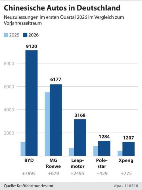 Shanghai – Chinesische Automarken gewinnen in Deutschland und Europa immer mehr an Boden. Im ersten Quartal waren sie für rund 3,1 Prozent der Neuzulassungen in Deutschland verantwortlich, wie sich aus Zahlen des Kraftfahrtbundesamtes ablesen lässt. Das ist zwar nur ein kleiner Anteil, doch er wächs